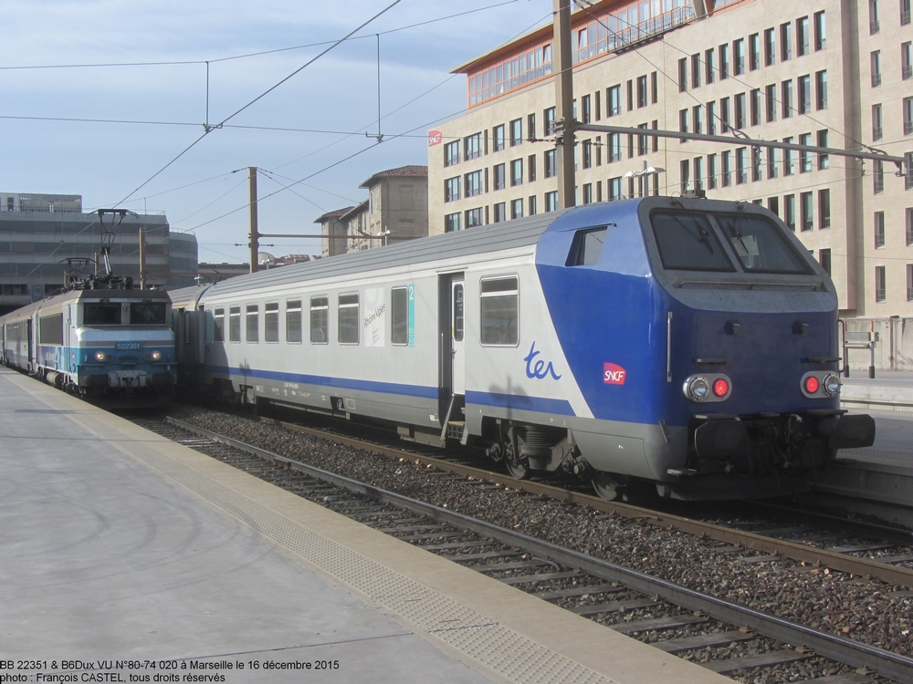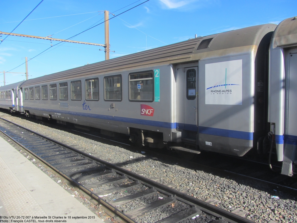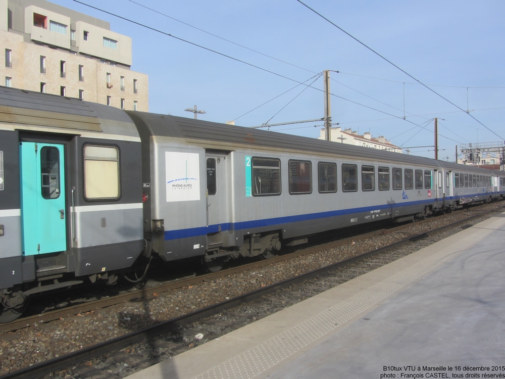 Les voitures Corail TER Rhône Alpes ne roulent pas dans le Gard mais sont visibles dans les Bouches du Rhône et le Vaucluse, car engagées sur des trains Lyon - Avignon - Marseille. Depuis les années 2008-2009, il s'agit de rames réversibles généralement associées à des BB 22200 (des BB 7200 sont visibles plus rarement ; il y a eu aussi quelques circulations de BB 25200, uniquement associée à des voitures pilotes B6Dux VU avec un système de télécommande MUX première génération).